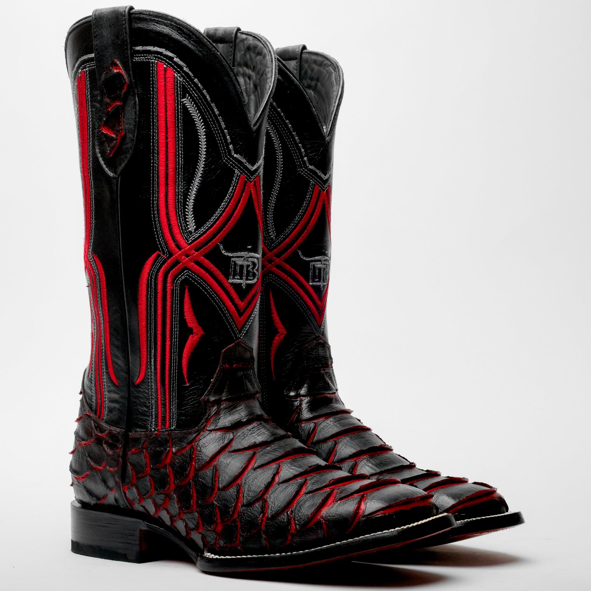 Black/Red Jumbo Python Leather Boots