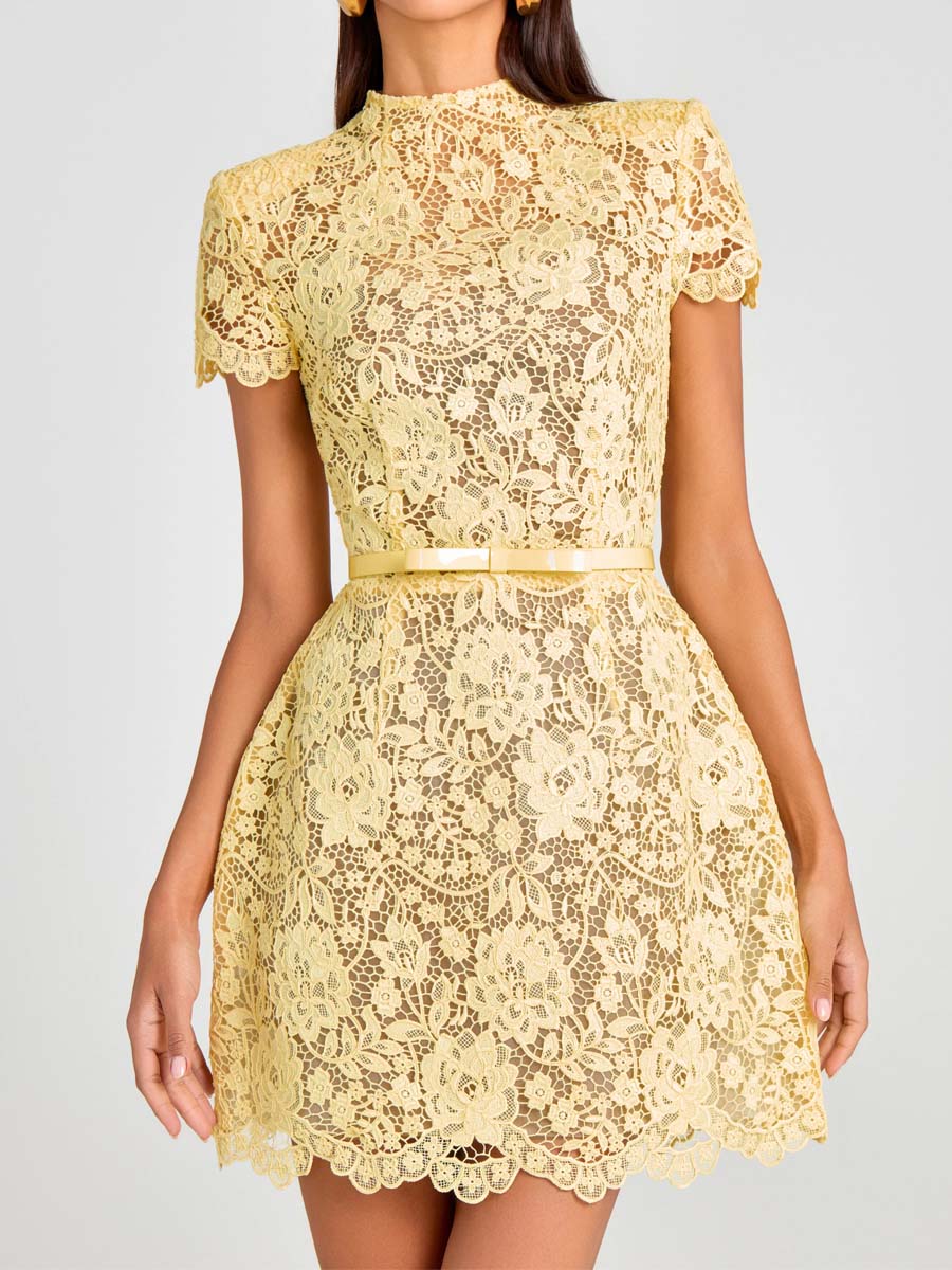 Elegant Lace Bow Belted Mini Dress