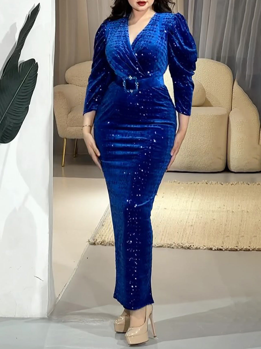 Shinny V Neck Maxi Dress